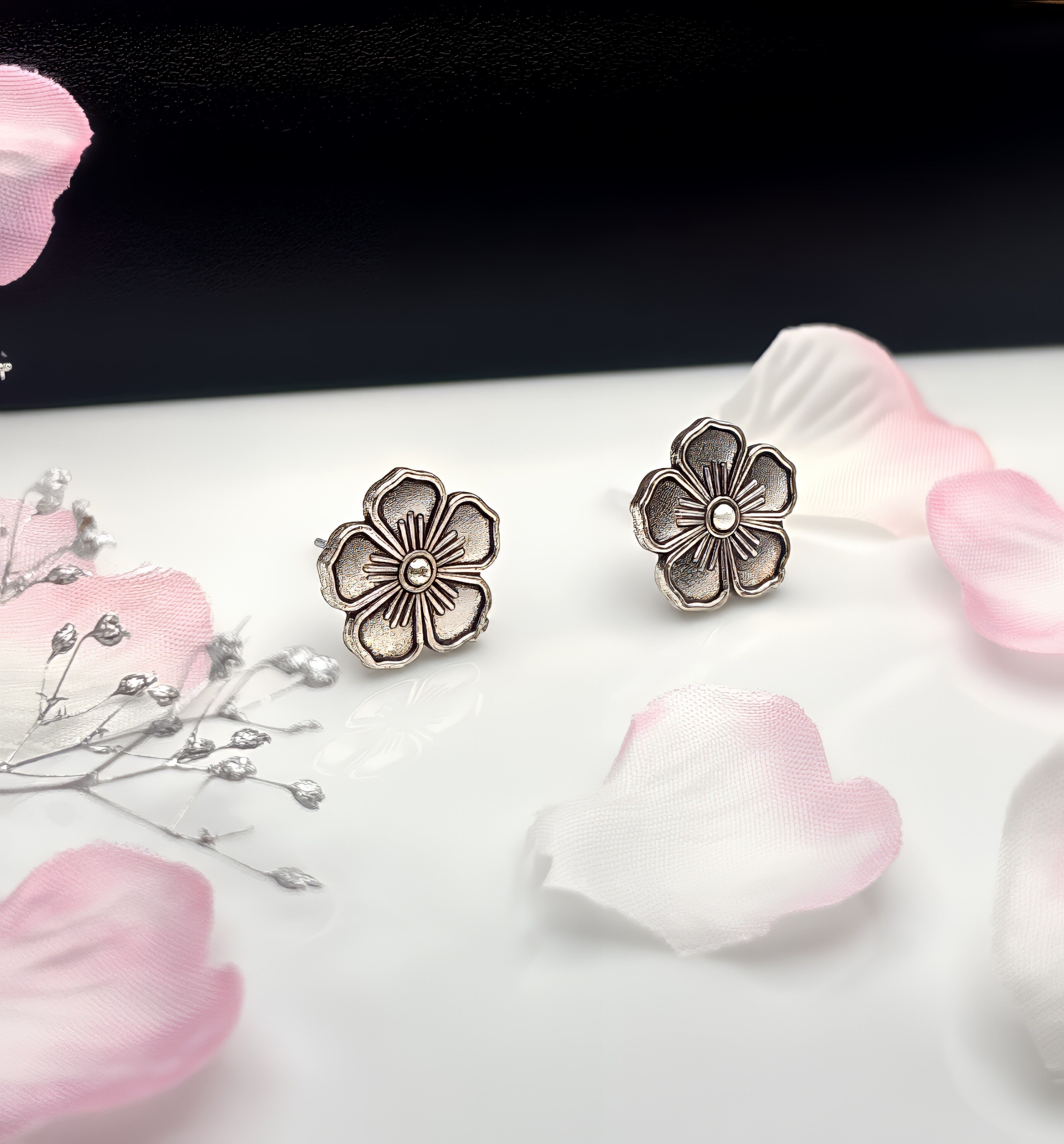 金属アレルギー 大人 シンプル シルバー アレルギー対応 ミニマル アクセサリー ジュエリー ハンドメイド プレゼント ギフト 春 家紋 和風 桜 さくら サクラ ピアス イヤリング