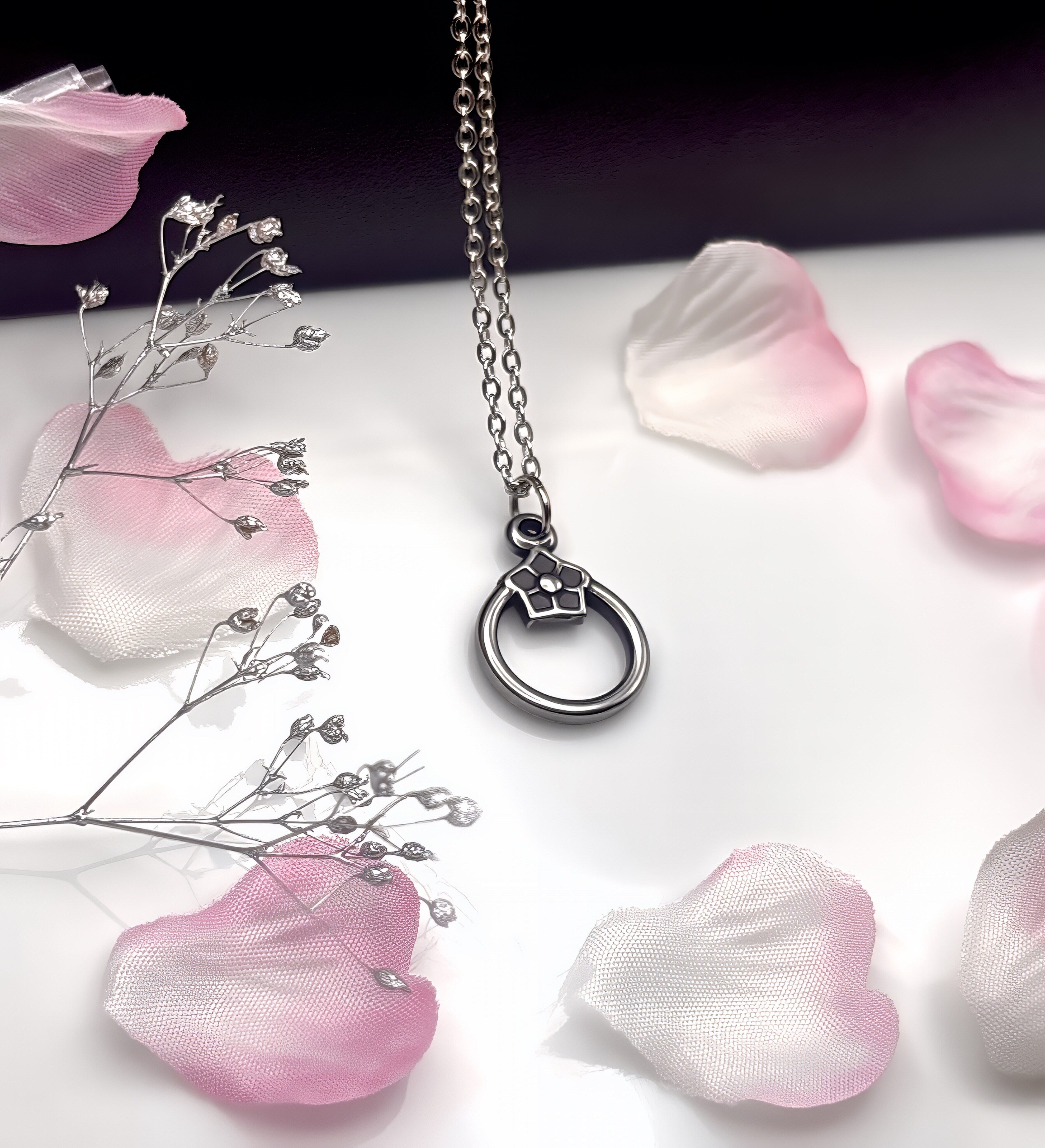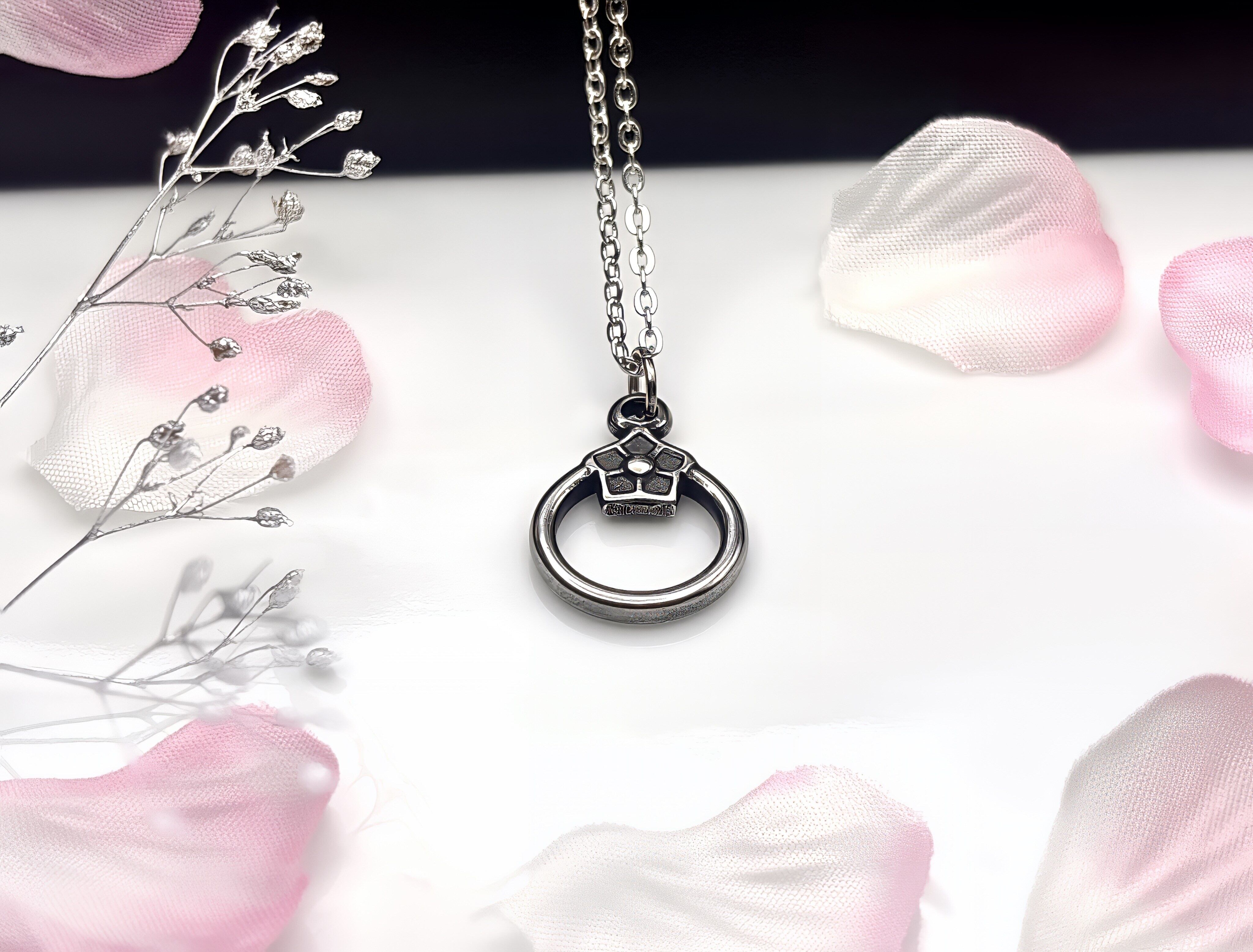 金属アレルギー 大人 シンプル シルバー アレルギー対応 ミニマル アクセサリー ジュエリー ハンドメイド プレゼント ギフト 春 家紋 和風 桜 さくら サクラ ネックレス リング